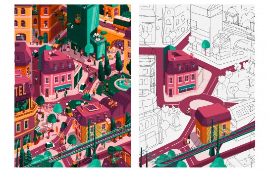In «Tour de Types» kann man in vier Etappen, mit individuell modifizierbaren Avatars, durch die Schweiz fahren und dabei seine Fahrkünste in Stadt und Land testen. Mittels Polygonen-Illustrationen kann der User mit einfachen Funktionen, Timing und Geschicklichkeitsaufgaben lösen. Die Streckenteile, als 2d Grafiken aufbereitet, erhalten mit exakt abgestimmten Scrolling-Effekten, ohne Fluchten, dimensionale Tiefe. Die visuelle Umsetzung von Formen und Objekten werden auf das grafisch Wesentliche reduziert und ergeben einen eigenständigen, handgemachten Stil. Gutes Spiel-Geschick wird belohnt mit mehr individuellen Optionen den Avatar zu gestalten."
