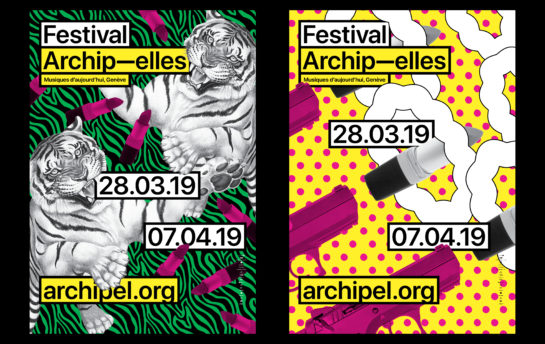 L’identité visuelle 2019 du Festival Archipel explore l’imagerie et les codes de la féminité. Elle déconstruit les stéréotypes à travers la création d’un langage visuel prônant une affirmation décomplexée de la féminité faisant référence aux expressions consciemment stylisées et autoréférencielles de celle-ci.